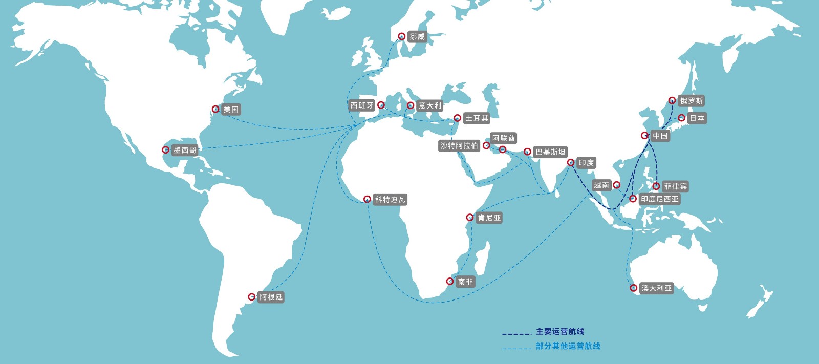 拉斯维加斯官网登录入口的境外航区运输业务,涉及全球远洋无限航区,包括世界各国家及地区的开放港口和国际通航运河及河流,运输货物以煤炭、矿石、粮食、件杂等干散货为主。